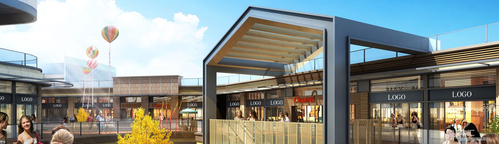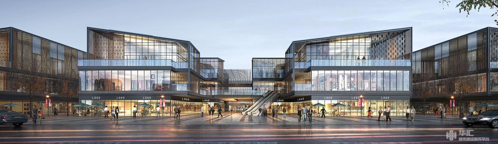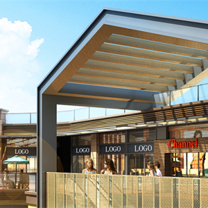 城市步行街:立面造型简洁大气,坡屋顶的设计使得建筑有历史的文化传承感,与商业步行街的元素有多处相互呼应,与购物中心融为一体。