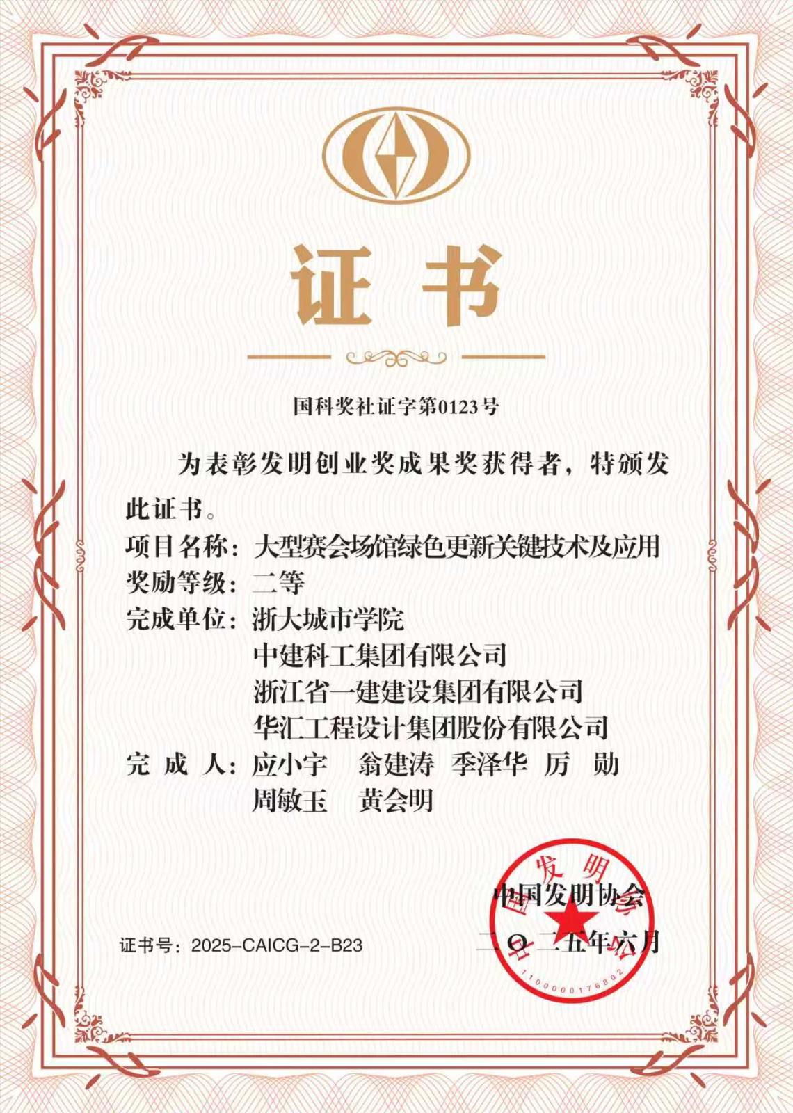近日,中国发明协会发布了关于《2025年度发明创业奖人物奖、成果奖、创新奖评审结果的公示》,集团参与的项目“大型赛会场馆绿色更新关键技术及应用”荣获“2025年度发明创业奖成果奖”二等奖。项目针对大型赛会场馆在全生命周期过程中的安全、舒适及节能问题,从设计、施…
