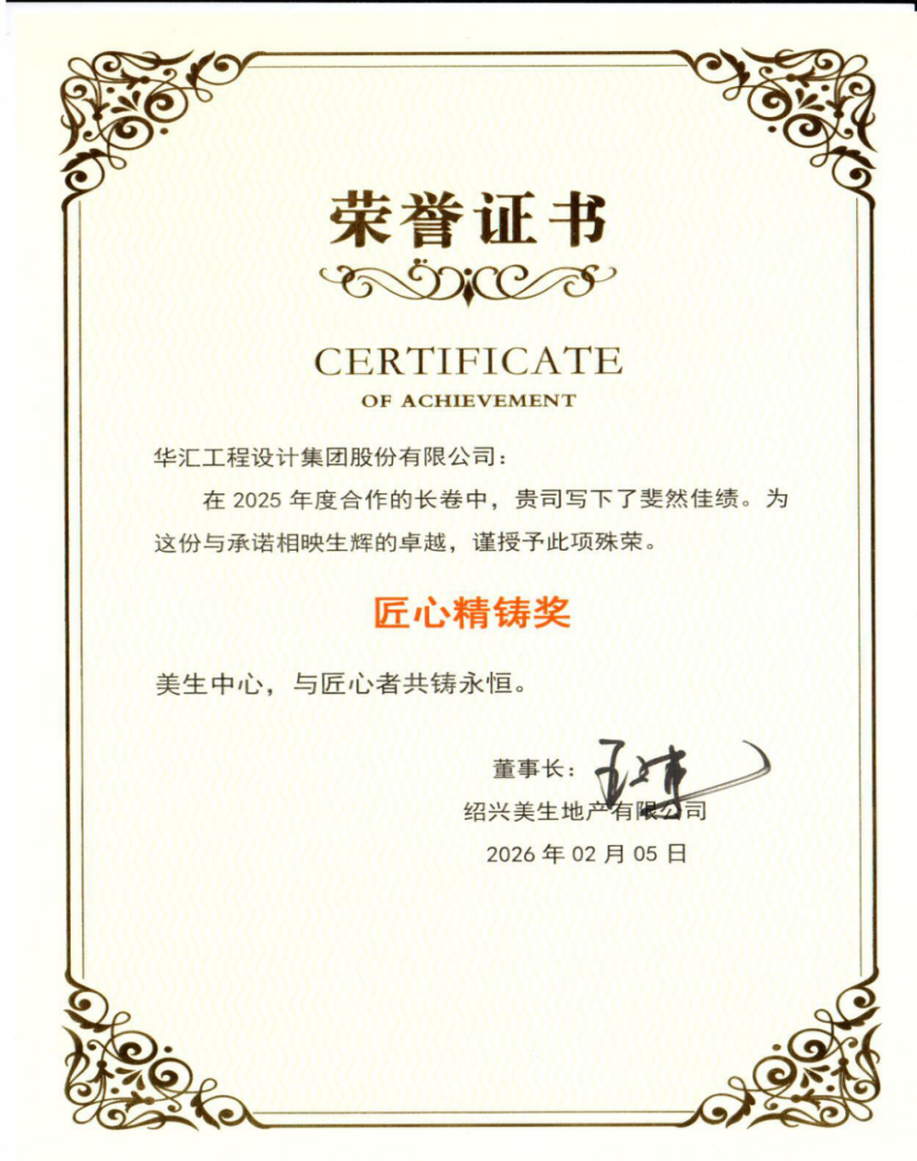 近日,集团在与绍兴美生房地产开发有限公司的绍兴迪荡B2地块双子楼城市更新项目合作中,凭借卓越的设计品质、高效的项目管理与持续的创新精神,荣获对方颁发的“匠心精铸奖” 。项目位于绍兴市迪荡核心区,原建筑包括酒店塔楼、办公塔楼及商业裙房,地上41层,地下3层,建…